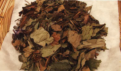 녹증용은 생육기간 중 수시로 수확합니다. 자연 건조시에는 잎 색깔이 변색되어 품질이 저하되므로 보통 열풍 건조기를 이용하는 것이 좋습니다. 열풍 건조기는 35℃에서 6~7시간 건조 후 40℃로 올려 잎이 마를 때까지 건조한 다음 줄기는 45~50℃로 건조합니다.