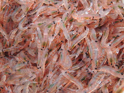투명한 몸에 붉은 빛을 띠는 크릴은 새우와 비슷하게 생긴 갑각류 플랑크톤으로, 남극해에 많이 서식하며 사람뿐만 아니라 많은 동물, 어류의 중요한 식량원이 되고 있습니다.