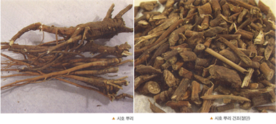 외면은 암갈색을 띠고 가로 주름이 있으며 파절면은 섬유성인 이들 뿌리를 모두 약용으로 사용하고 있습니다. 한때 일본에서 들여와 전남 순천 등지에서 계약 재배했던 '미시마시호'가 여기에 속합니다.