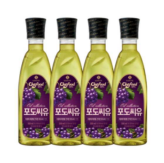 포도씨유는 다불포화 지방과 비타민E의 좋은 공급원으로 두 배가 되며, 연기점은 215℃가 됩니다. 포도씨유 피부 건강, 면역 기능, 그리고 세포에 대한 산화적 손상 예방에 있어 필수적인 영양소인 비타민E가 풍부합니다.