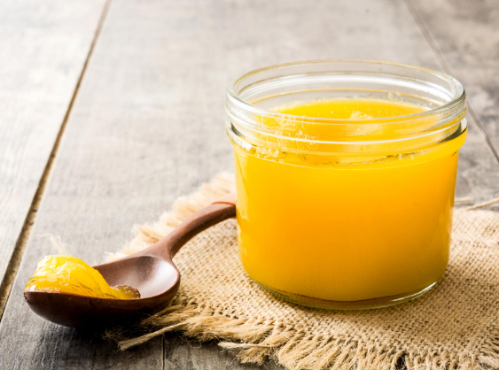 이런 형태의 정제된 버터의 우유 고형분과 물이 제거되어 일반 버터보다 고농도의 지방을 함유한 최종 제품을 만들었습니다. 포화지방이 많고 연기도 높아 다양한 요리와 레시피에 활용할 수 있으며, 연기점은 250℃입니다.