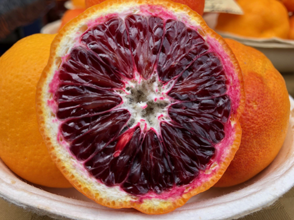 이 지역의 기후 조건 덕분에 모로 과육은 루비색을 띤 오렌지 정맥에서부터 버밀리언, 때로는 거의 검은 색에 이르기까지 다양하게 나타납니다.