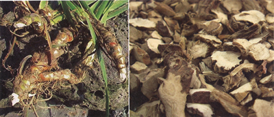 수확한 뿌리줄기의 잎과 가는 뿌리를 잘라 버리고 뿌리줄기를 물에 깨끗이 씻어서 햇볕에 말리거나 60℃이하의 건조기에서 건조시킵니다.