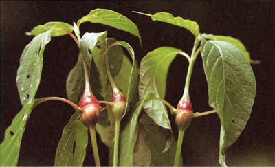 꽃은 수상화서로 가지 끝이나 잎 겨드랑이에서 양성으로 밑에서 위로 피어 올라가며 모두 밑으로 굽어져 있습니다. 흑색의 꽃이 8~9월에 피고 열매는 타원형에 광택이 있고 종자는 한 개씩 들어 있고 황갈색을 띠고 있습니다.