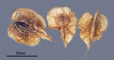열매는 짙은 갈색을 띤 수과이고 종자는 3개의 날개로 싸여 있으며 종자 1,000개의 무게(천립중)는 1.1g정도로 매우 가볍습니다.