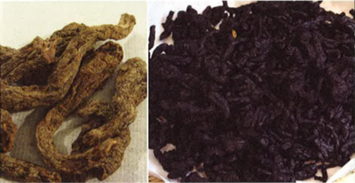 숙지황 : 생지황을 쪄서 말리면 새까맣고 끈적끈적하게 된 것