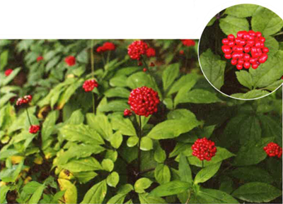인삼은 모르는 사람이 없을 정도로 너무나 잘 알려진 식물입니다. 인삼은 전국적으로 재배하며 깊은 산에서 야생으로 자리기도 하는 식물입니다. 다년생 초본으로 종자로 번식하며, 4~5월에 꽃이 핍니다. 높이 40~60cm 정도로 자라고 뿌리줄기는 짧으며 곧거나 비스듬히 섭니다.