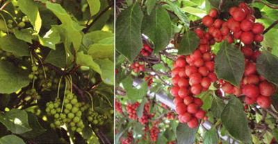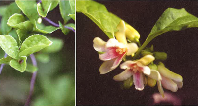 잎 뒷면에는 약간의 털이 있고 꽃은 홍백색으로 6~7월에 핍니다. 둥근열매는 장과이며 홍색이고 이삭모양으로 여러개가 달리며 9월에 붉게 익는데 1~2개의 홍갈색 종자가 들어 있습니다.
